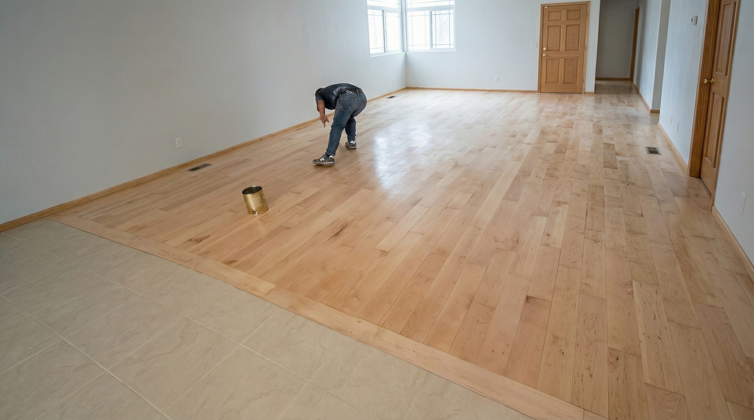 Revitalización total de piso de duela clara en interiores habitacionales.