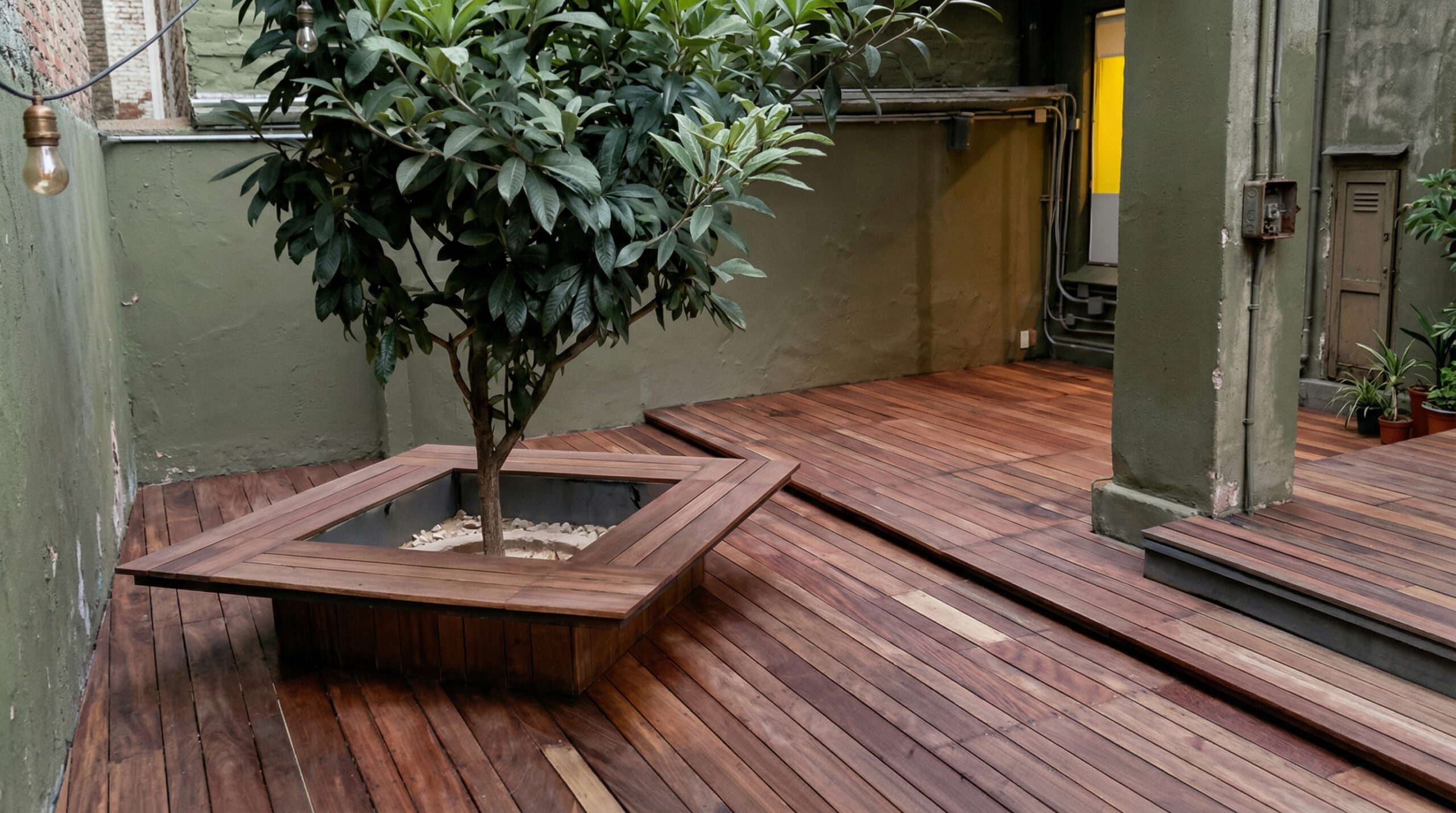Mantenimiento y protección contra intemperie para decks de madera en terrazas.