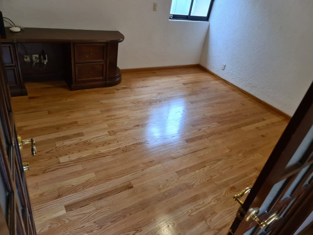 Revitalización total de piso de duela clara en interiores habitacionales.